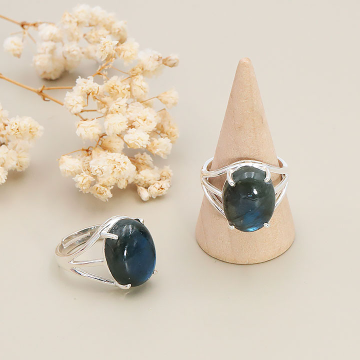 Silver ring 925 rhodium coated model 09 rose quartz Madagascar AA+ (1 piece) set N°1A0425