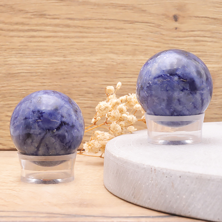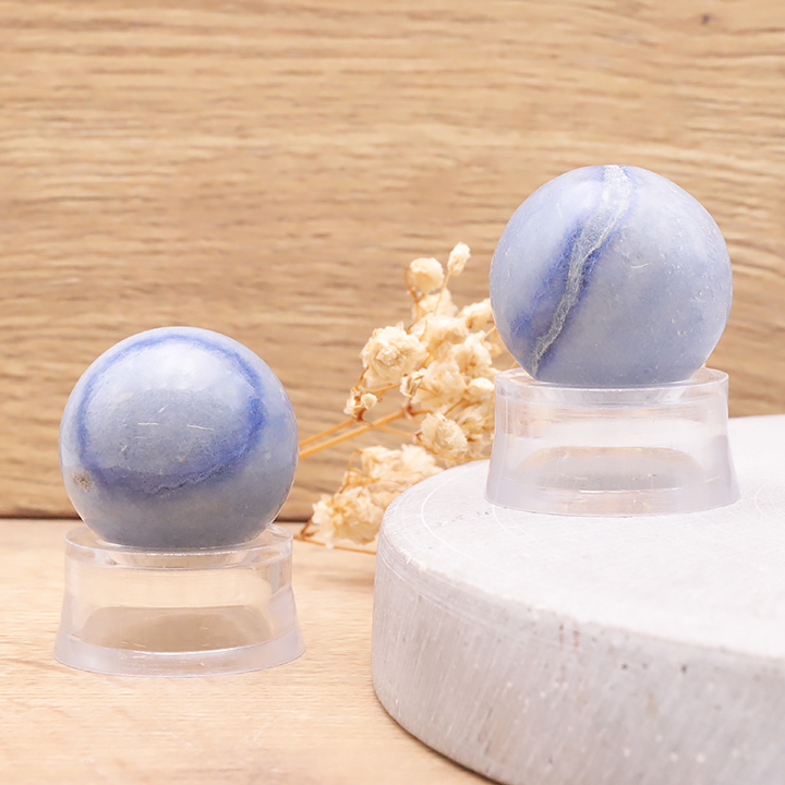 Bracelets, donut pendants and figurines in blue aventurine. Blue aventurine stone pebbles.