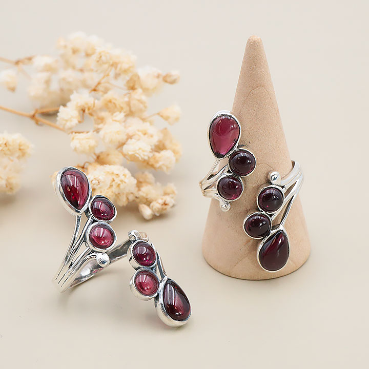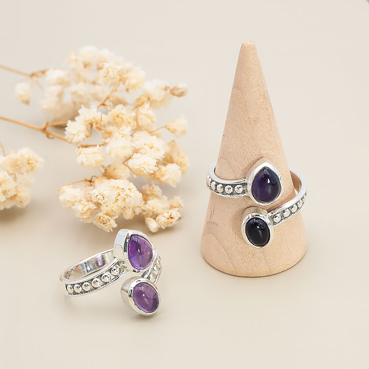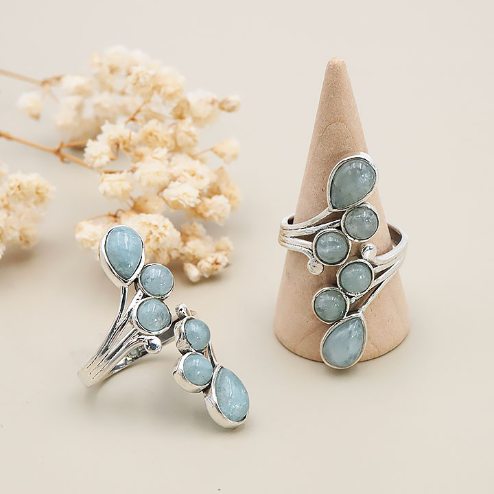 Adjustable gemstone and silver rings 925.