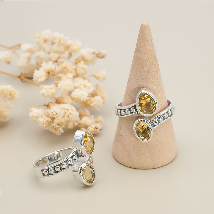 Sterling silver ring 925 model 04 faceted citrine AAA (1 piece) set No. 1A0525