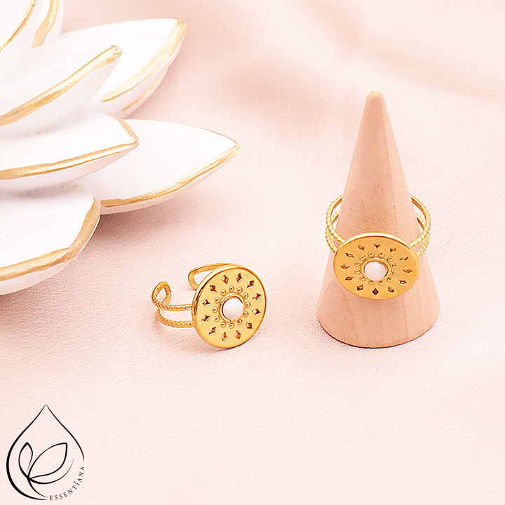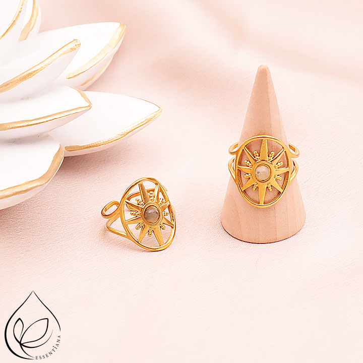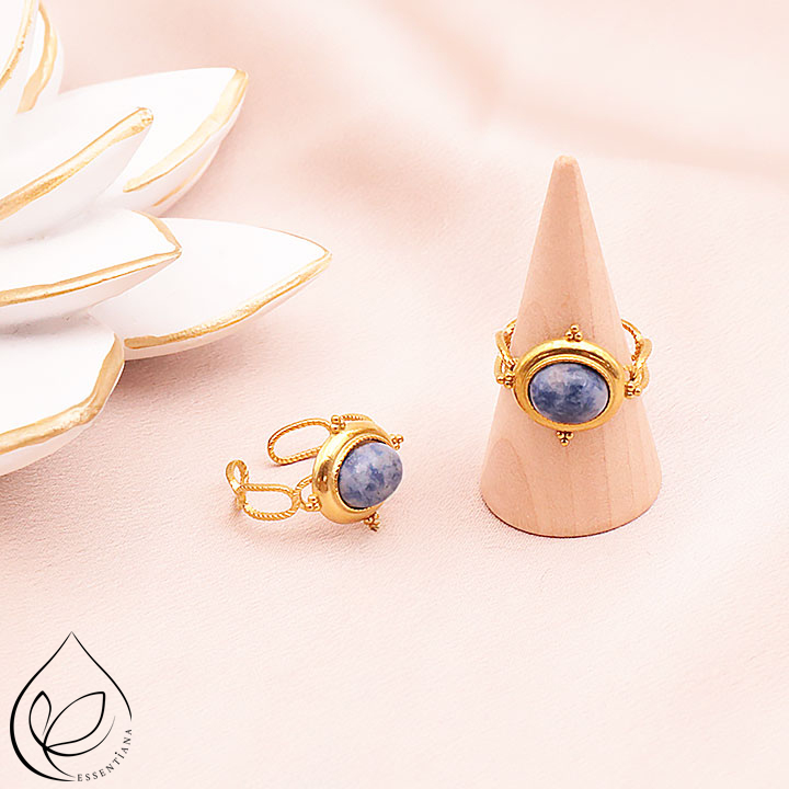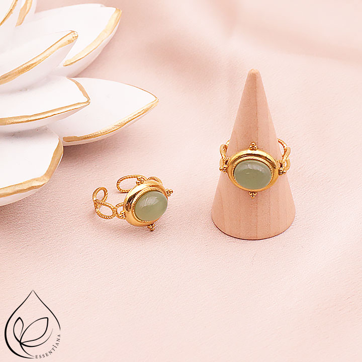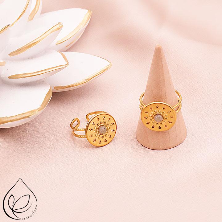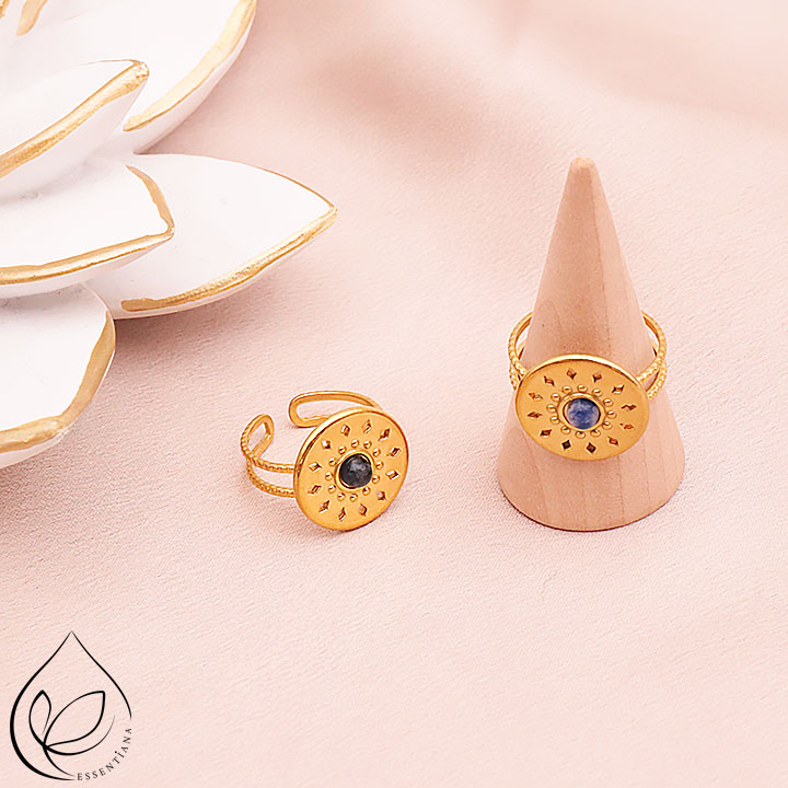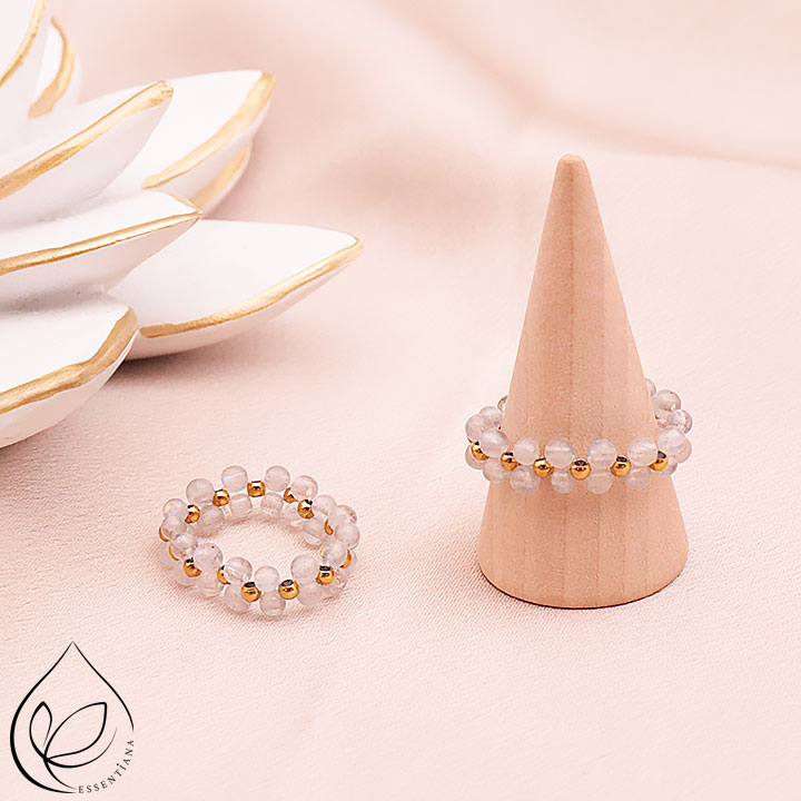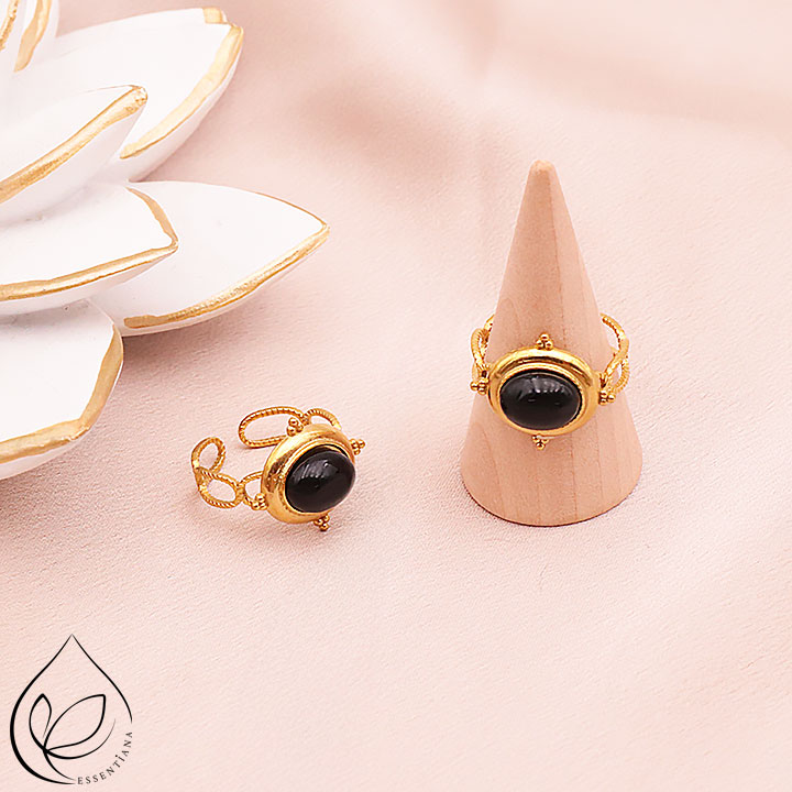 Ring Ondine rock crystal, onyx, dalmatian jasper A