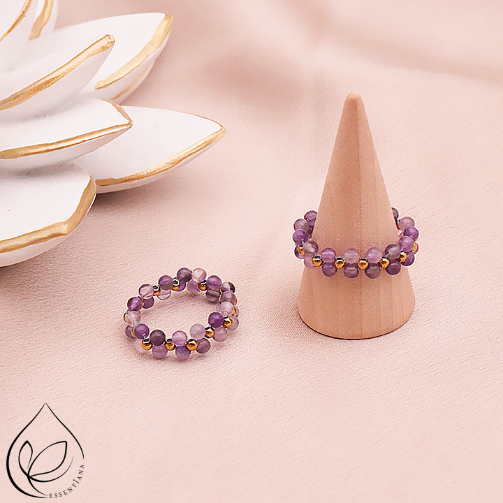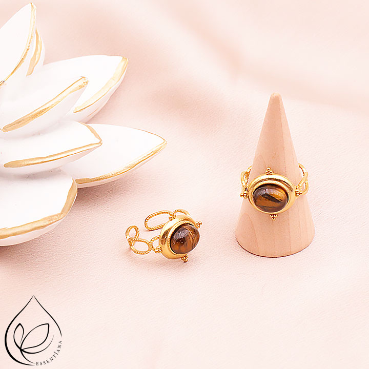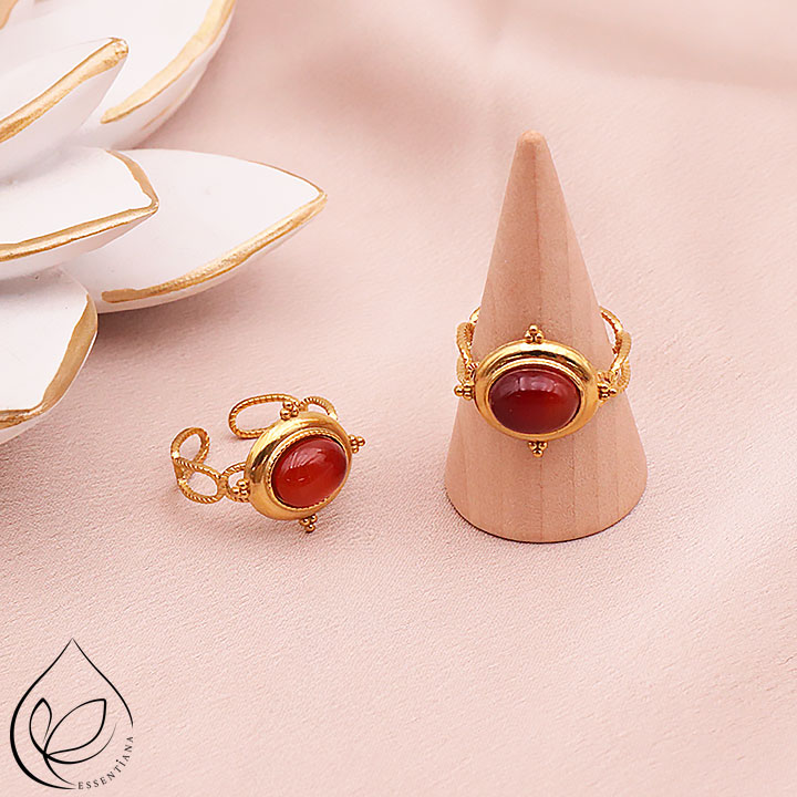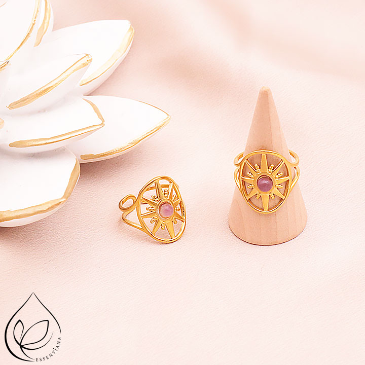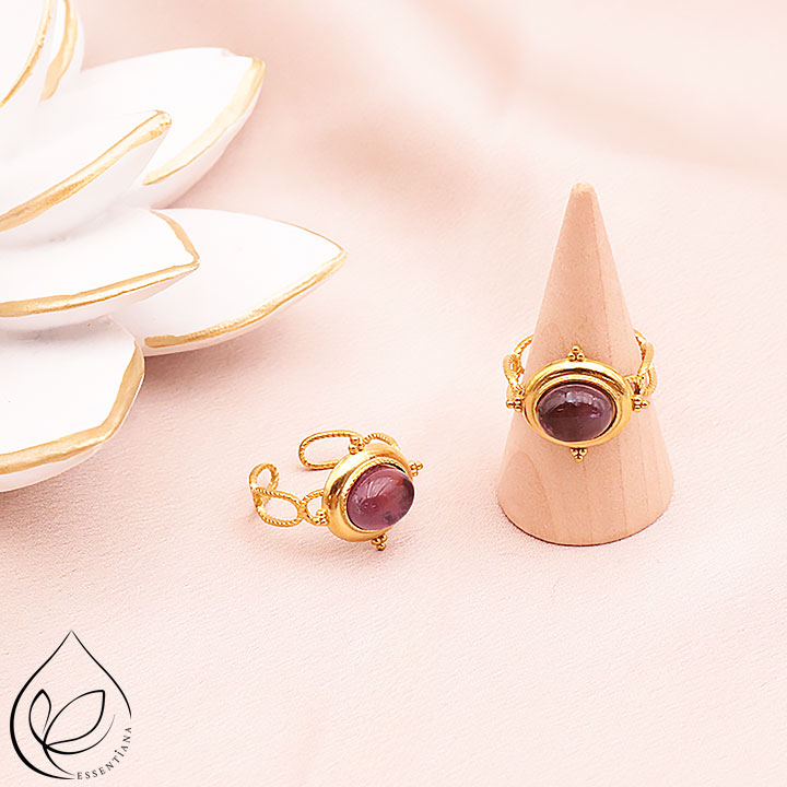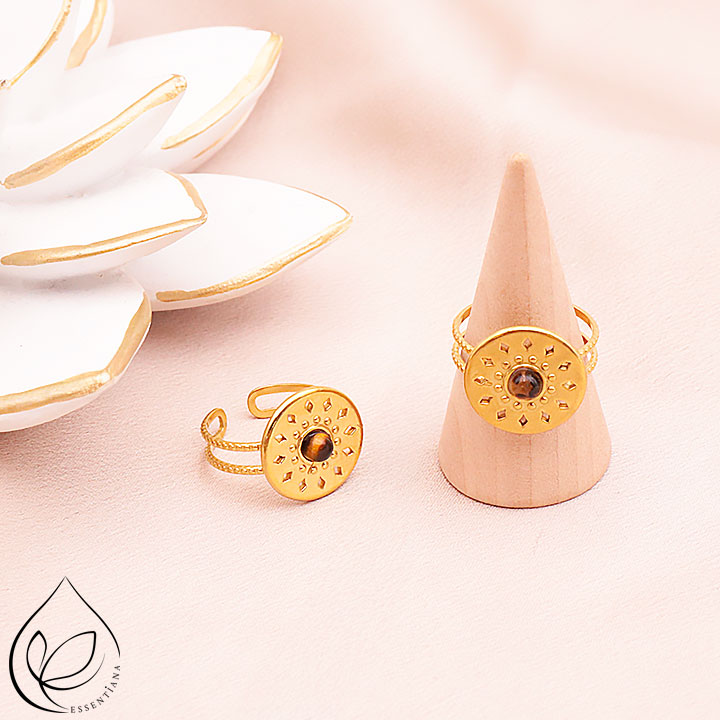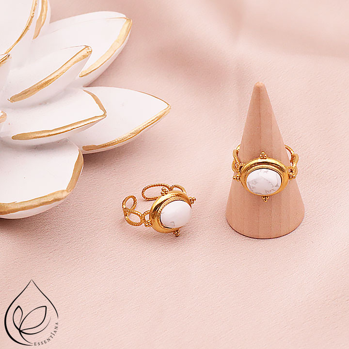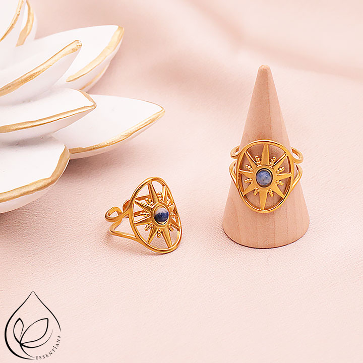 Ring Ondine rock crystal, onyx, dalmatian jasper A