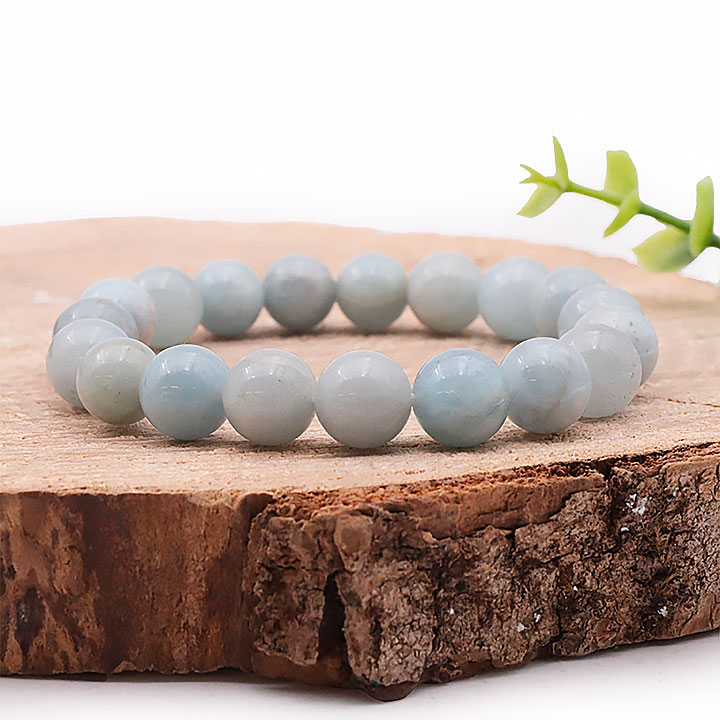10mm Bead Bracelet Aquamarine Brazil AA (9.5-10.5mm)
