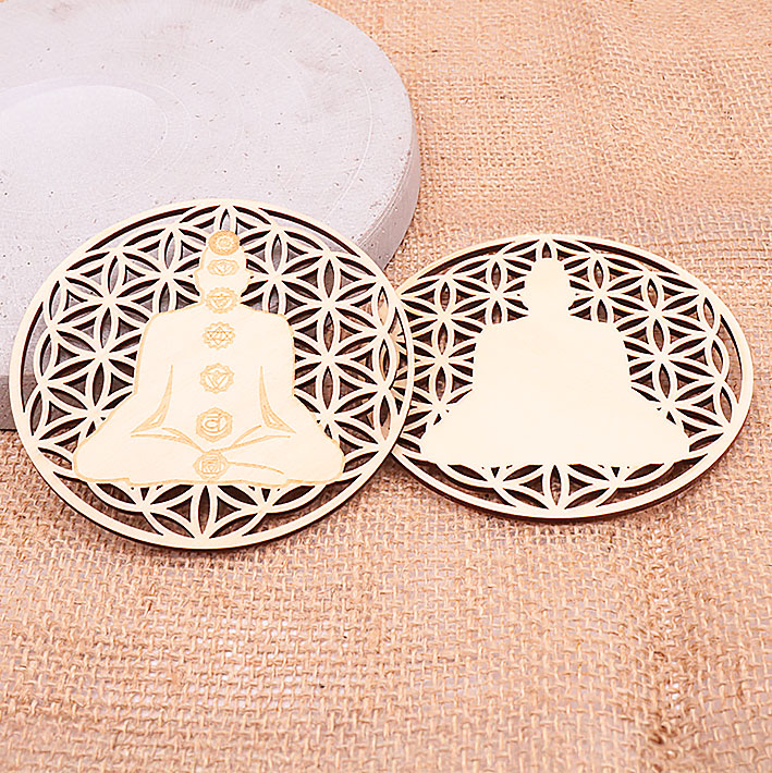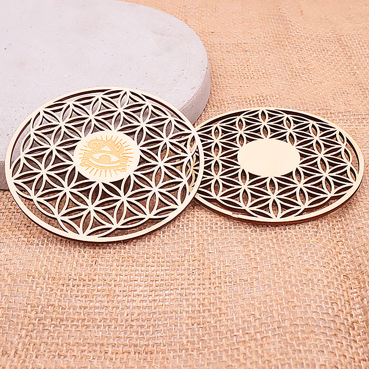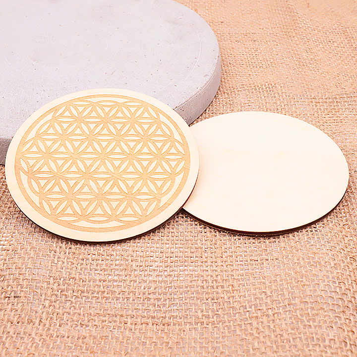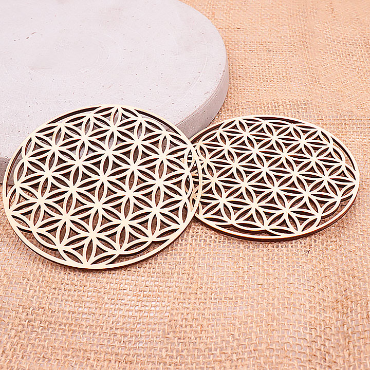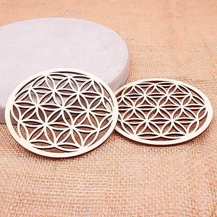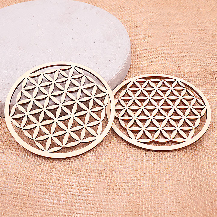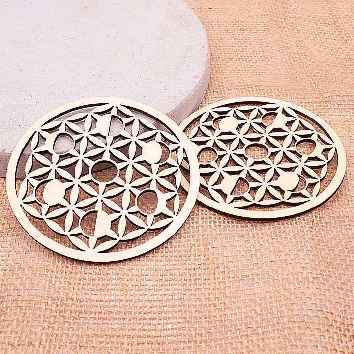 Wooden plaque model 08 hollow flower of life engraved 100mm (set 3 pieces)