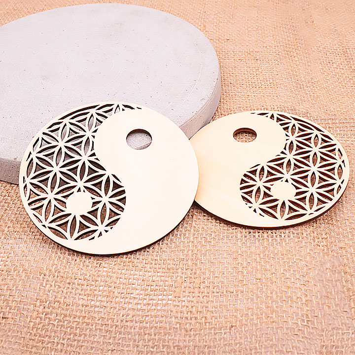 Wooden plaque model 05 hollow flower of life / yin yang 100mm (set 3 pieces)