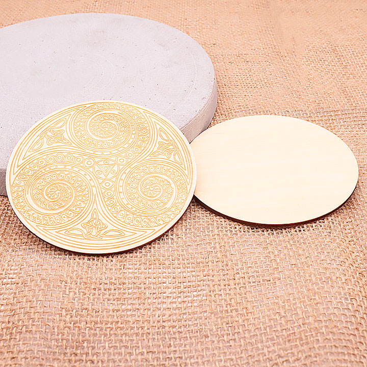 Wooden plaque model 19 with engraved triskele arabesque symbol 100mm (set of 3 pieces)