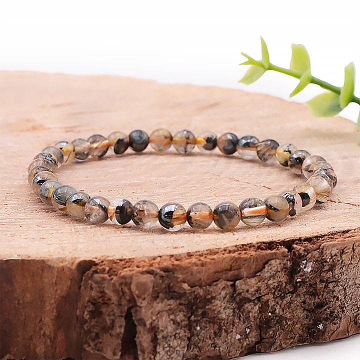 Ball bracelet 04mm rutilated quartz crystal hematite AAA (04.5-05.5mm)