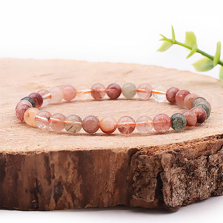 Multicolored Rutilated Rock Crystal 06mm Bead Bracelet A
