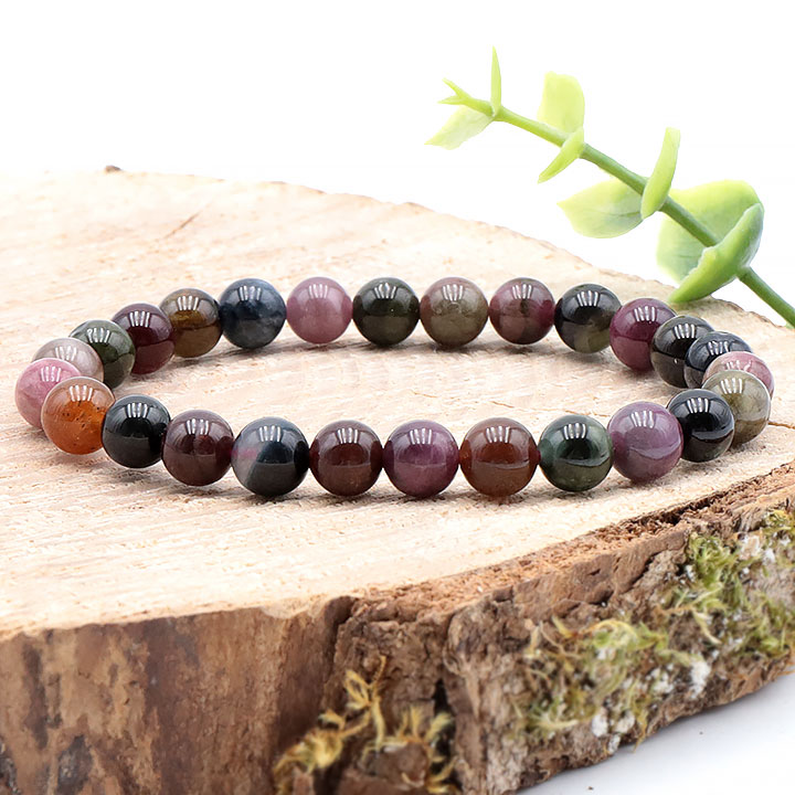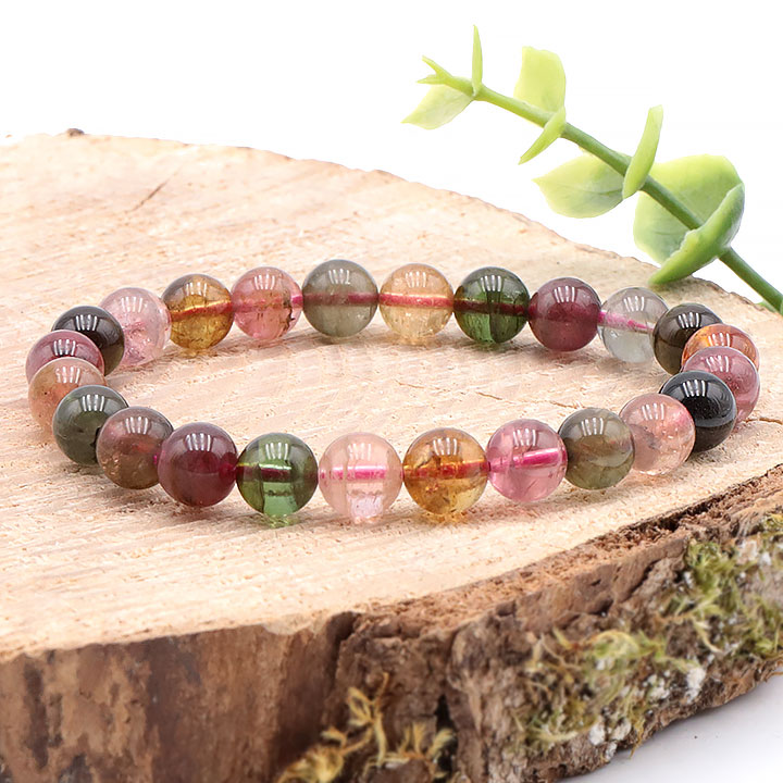 Multicolored tourmaline bead bracelet 08mm A