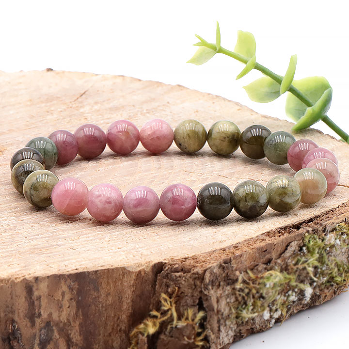 Polychrome tourmaline bead bracelet 08mm (watermelon) AA (07-08mm)