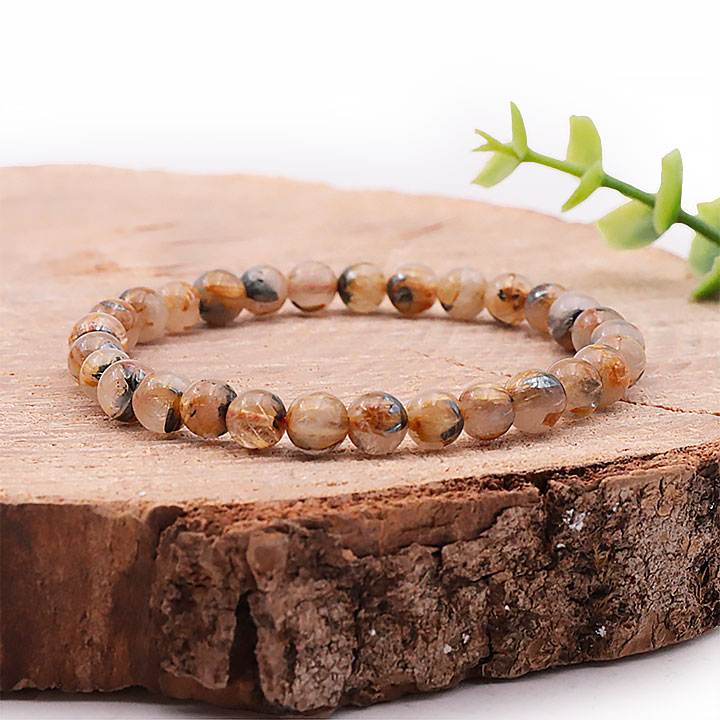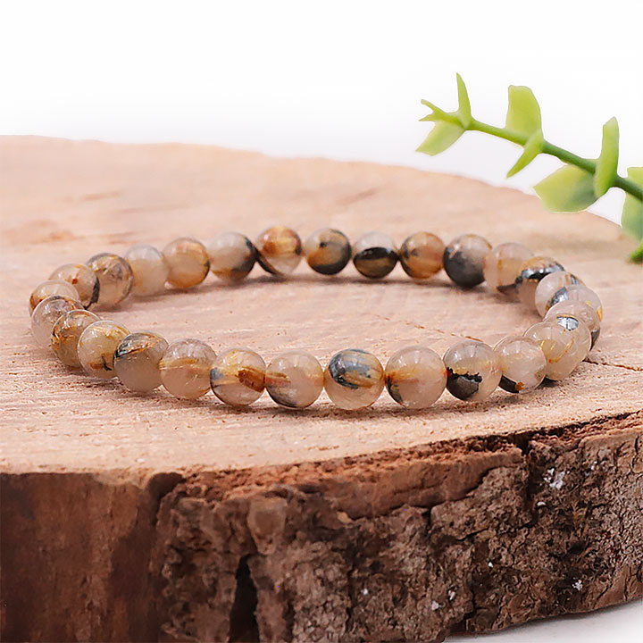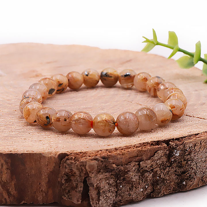 Ball bracelet 06mm rutilated quartz crystal hematite AA (06.5-07.5mm)