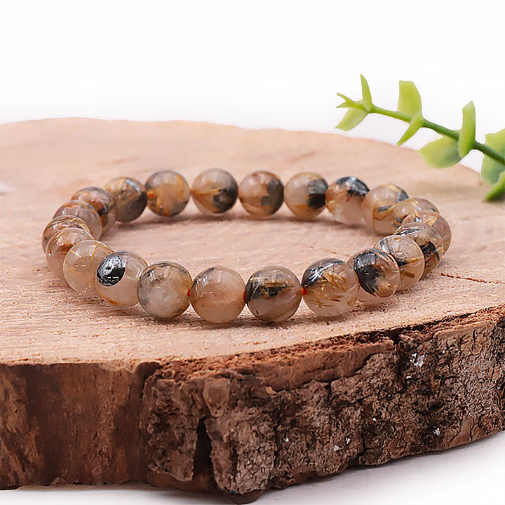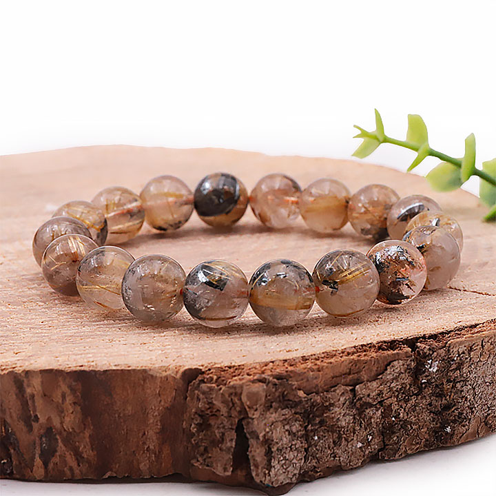 10mm Bead Bracelet in Rutile Rock Crystal Hematite AA+ (09.5-10.5mm)