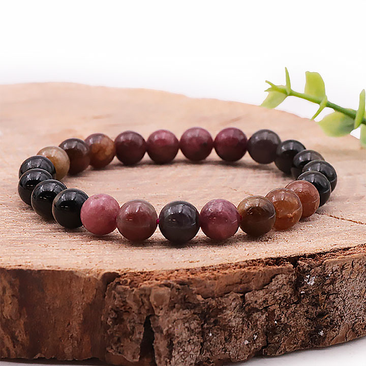 Multicolored tourmaline ball bracelet 08mm sorted AA (09-10mm)