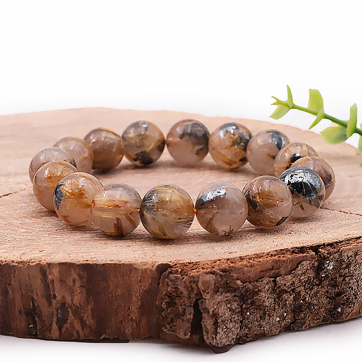 12mm bead bracelet rutilated rock crystal hematite AA+ (12.5-13.5mm)