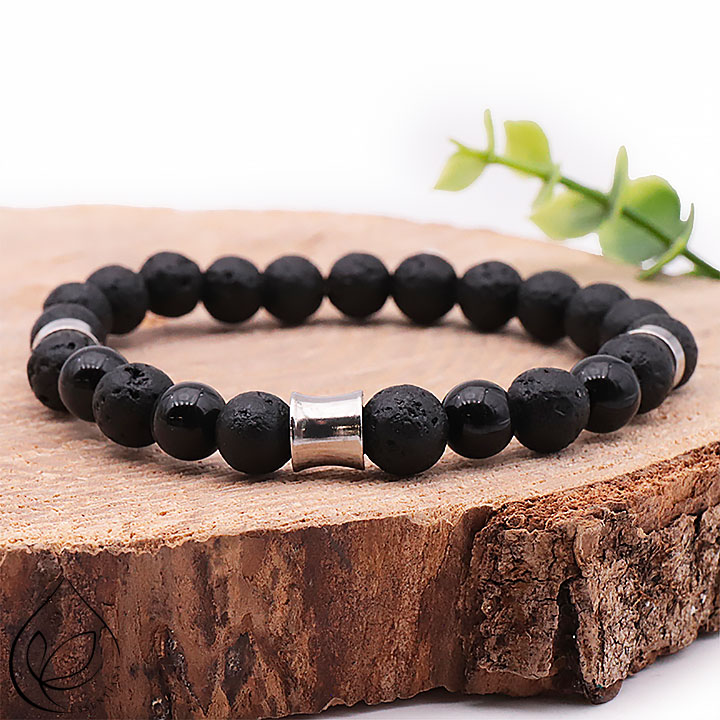 Silver Nemo bracelet with black obsidian, treated lapis lazuli A