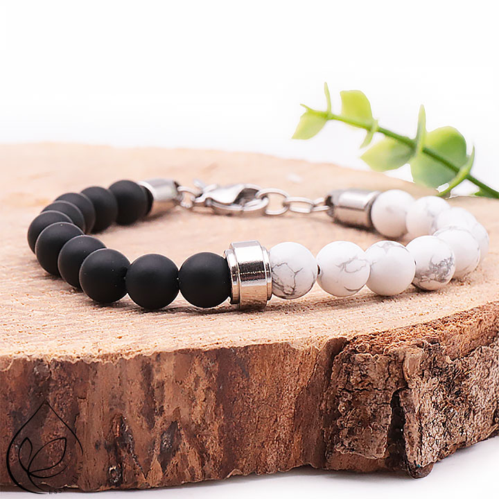 Gold Onyx, Wood, White Howlite Bracelet Ring A