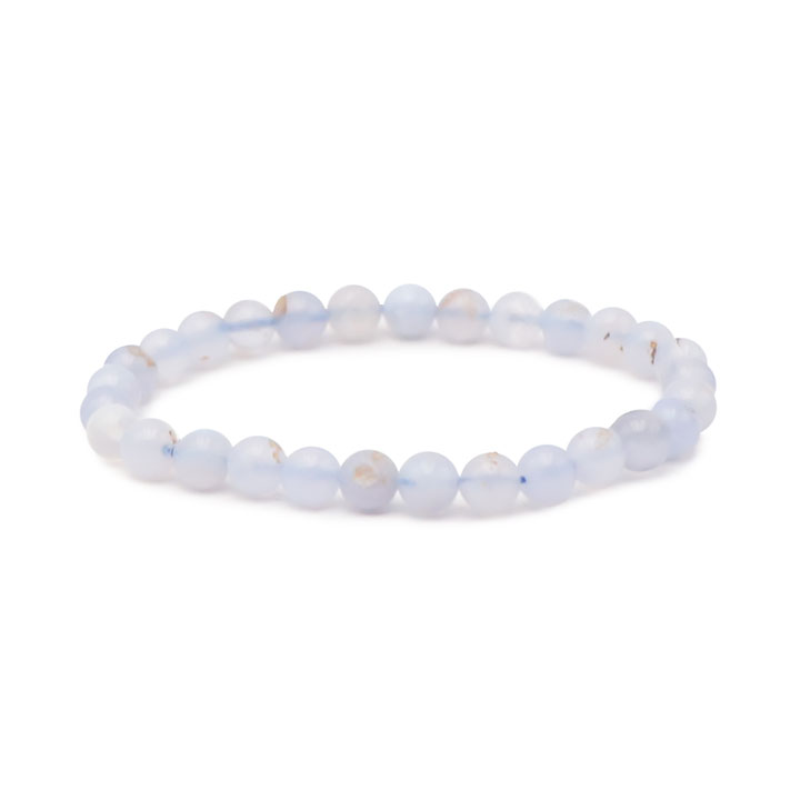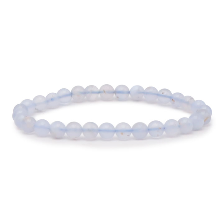 Bracelets and pendants in Blue Chalcedony. Faceted beads and tumbled stones.