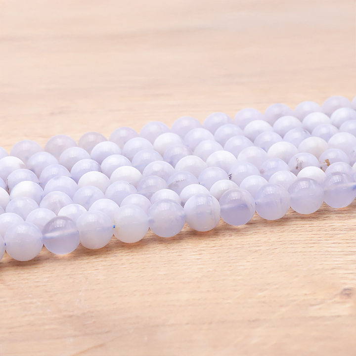 String of 08mm blue chalcedony beads Namibia AA (08-09mm)