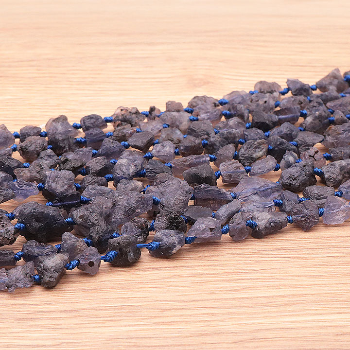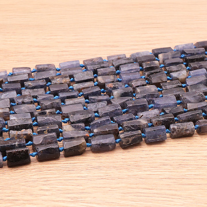 Cordierite bracelets. Faceted beads and rolled cordierite stones.