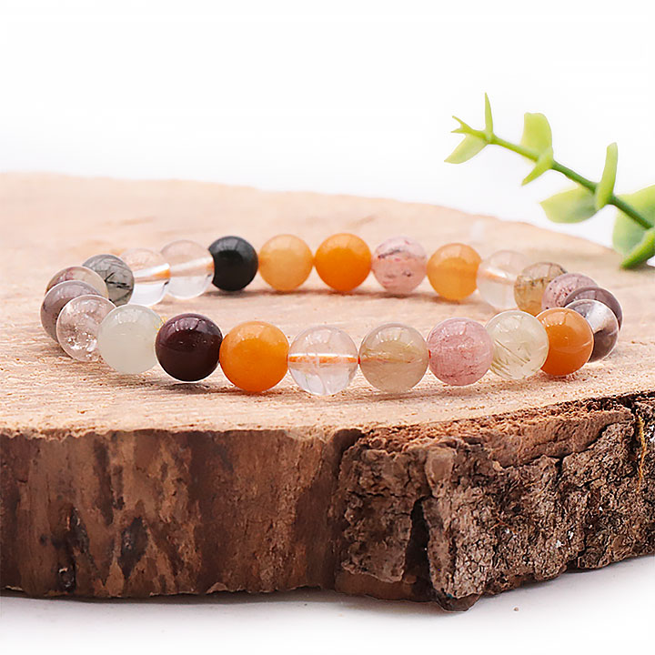 Rock crystal bracelets and pendants rutile. Rolled rock crystal stones.