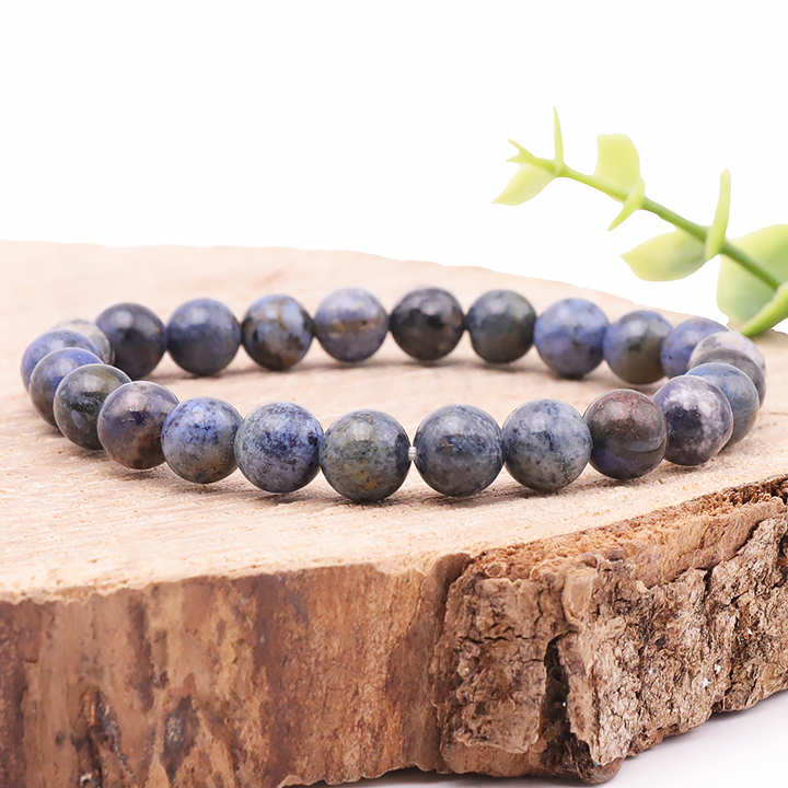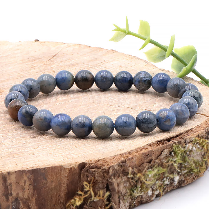 Bracelets in dumortierite and stones for pendants.