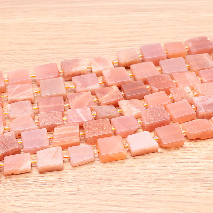 Strand of Square Beads 12mm Pink Moonstone AA