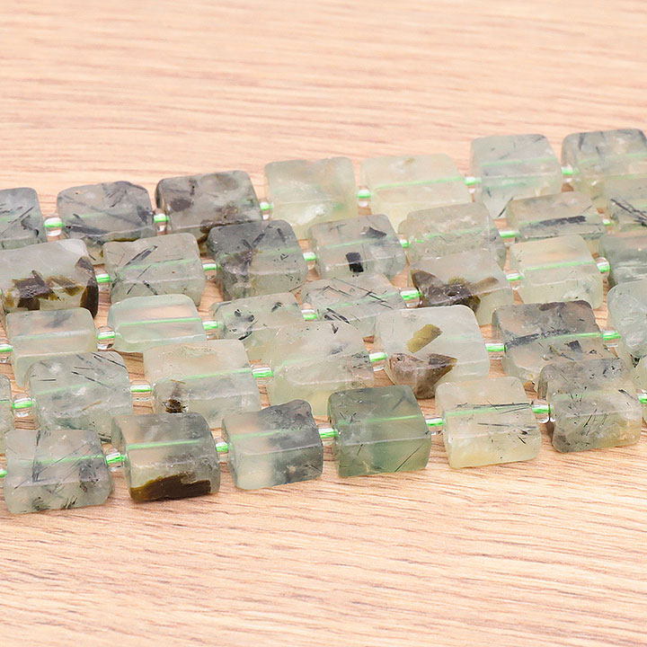 Square Prehnite Bead Strand 14mm AA