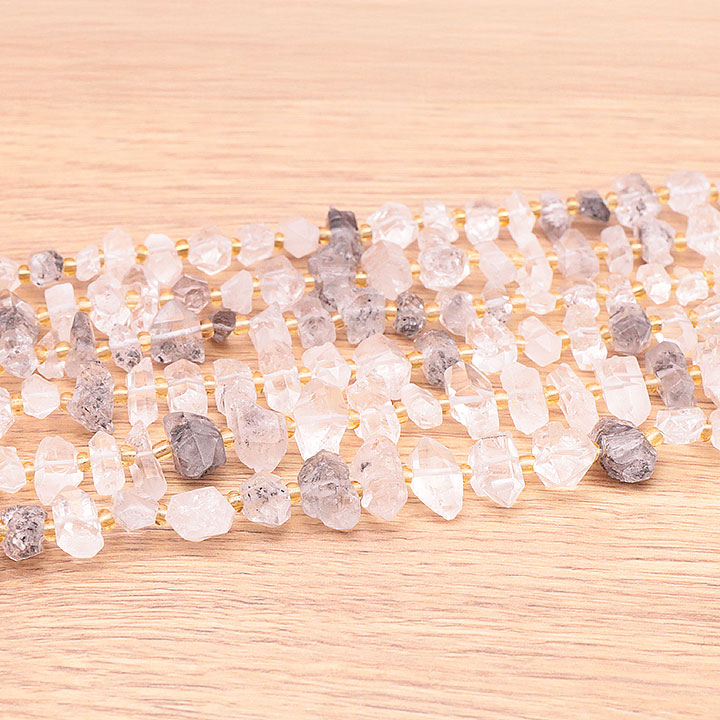 Strand of tumbled stones 06 x 14mm Herkimer crystal double-terminated AA