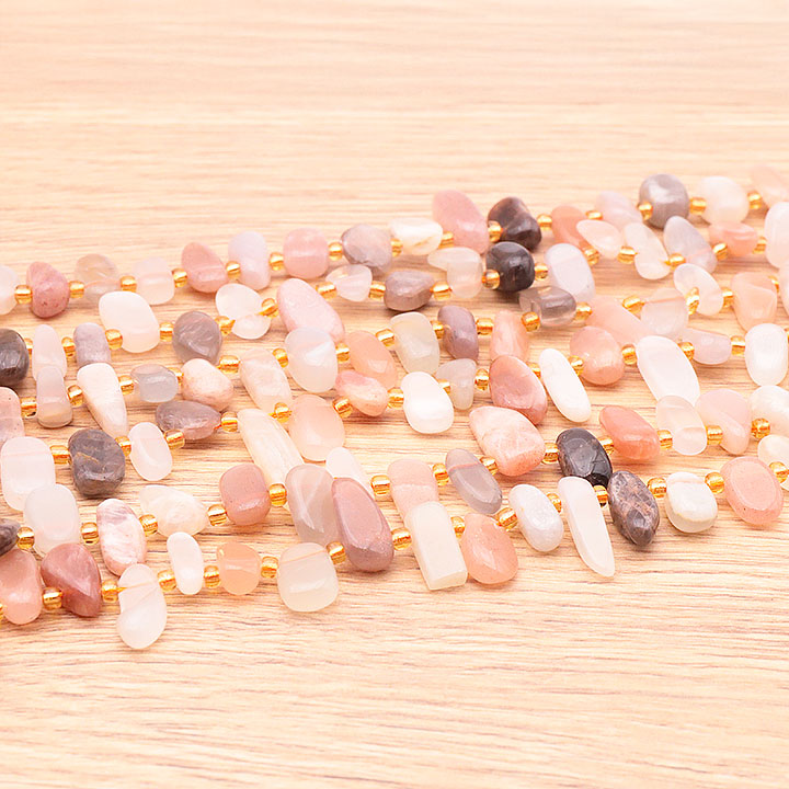 Strand of tumbled stone beads 06 x 14mm beige moonstone AA