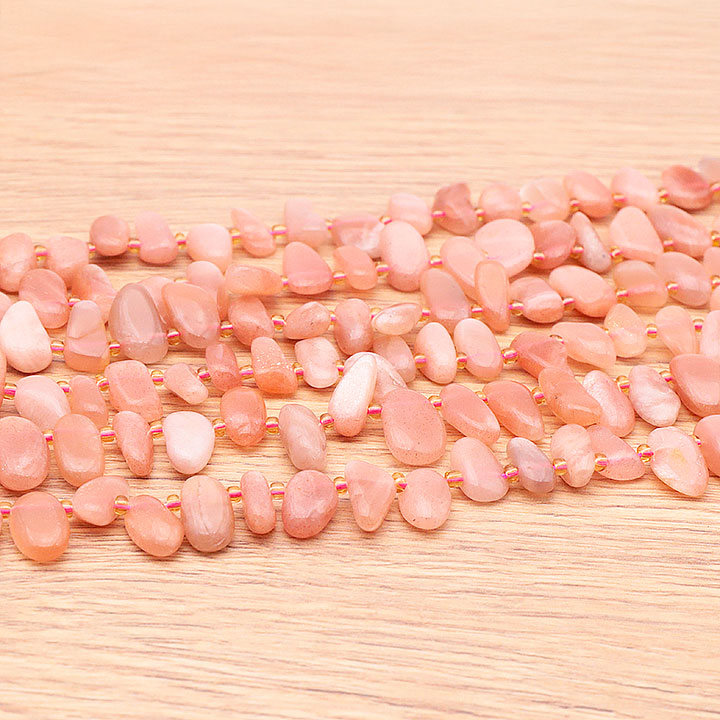 Strand of tumbled stone beads 06 x 14mm pink moonstone AA