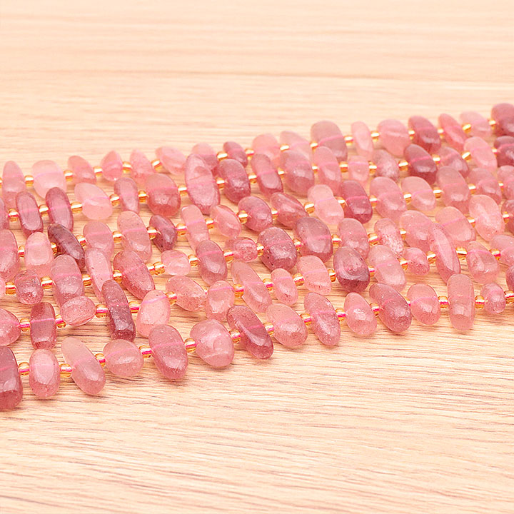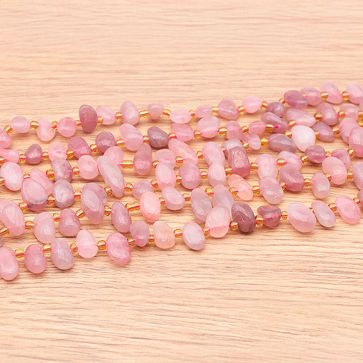 Strand of tumbled gemstone beads 06 x 14mm pink violet quartz AA