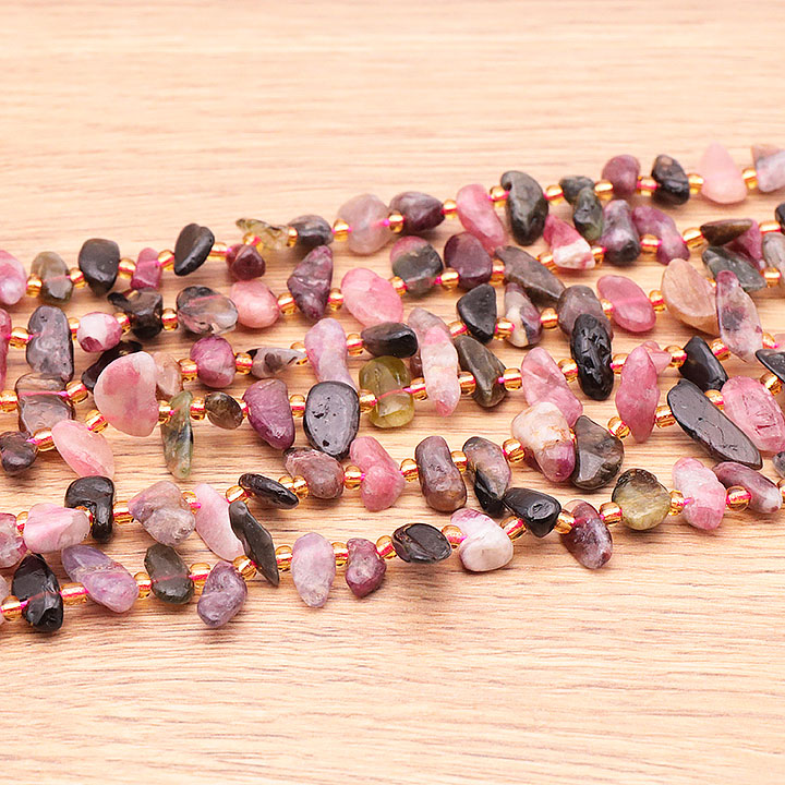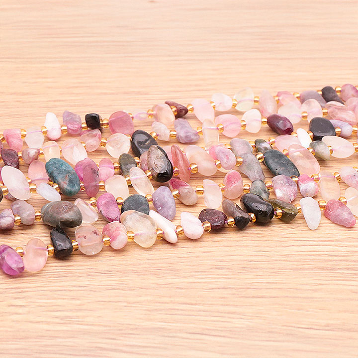 String of tumbled stone beads 06 x 14mm multicolor tourmaline A