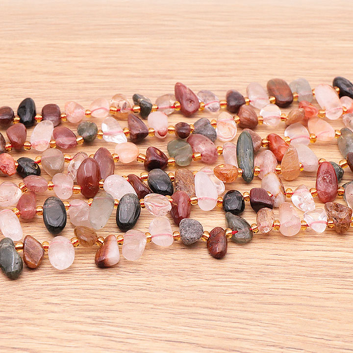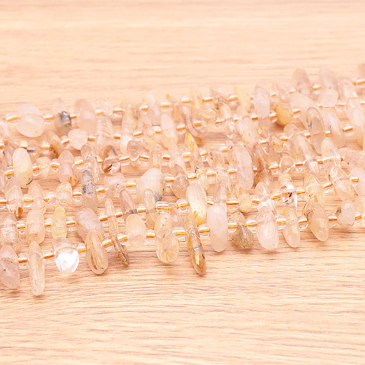 Strand of rolled stone pearls 06 x 14mm multicolored rutile rock crystal AA