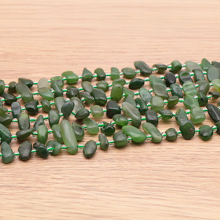 Thread of tumbled stone beads 06 x 14mm nephrite jade AA