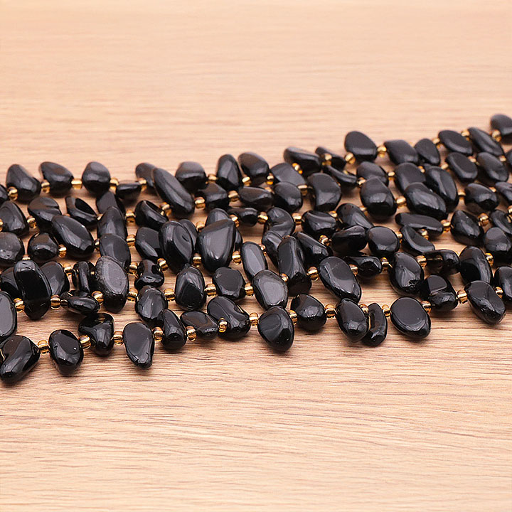 Stone pearl string tumbled stones 06 x 14mm onyx A