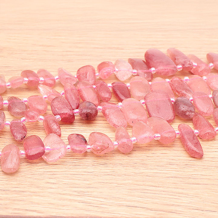 Strand of strawberry quartz hematite tumbled stones 06 x 14mm (A)