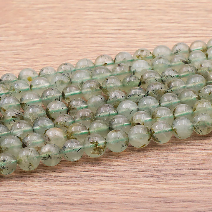 Thread of 08mm peristerite beads with black tourmaline inclusion A