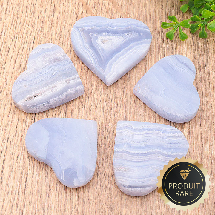 Blue chalcedony heart palm stone Namibia AAA 40 to 50mm (1 piece)
