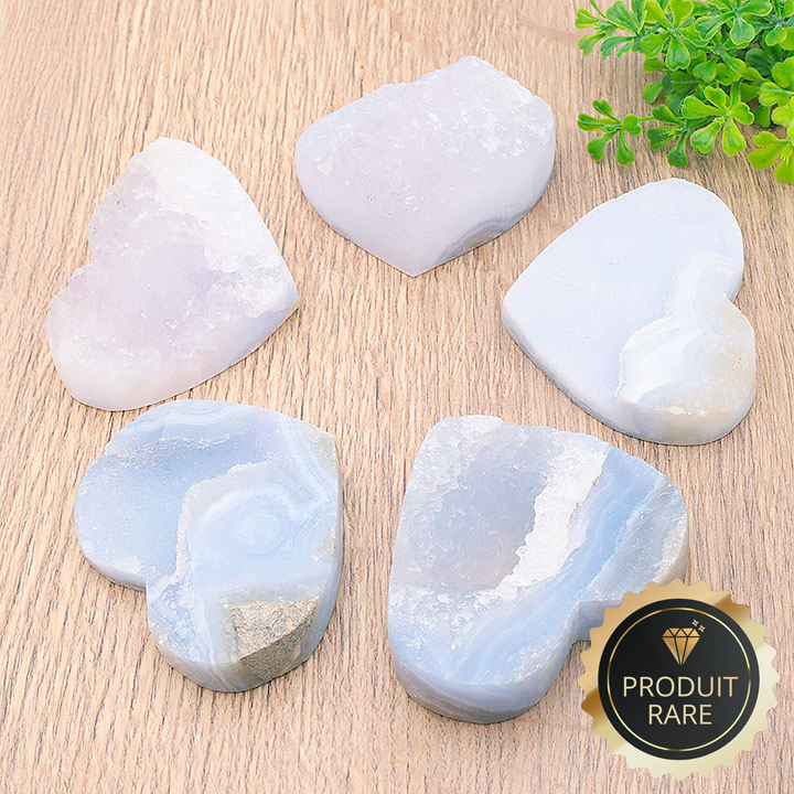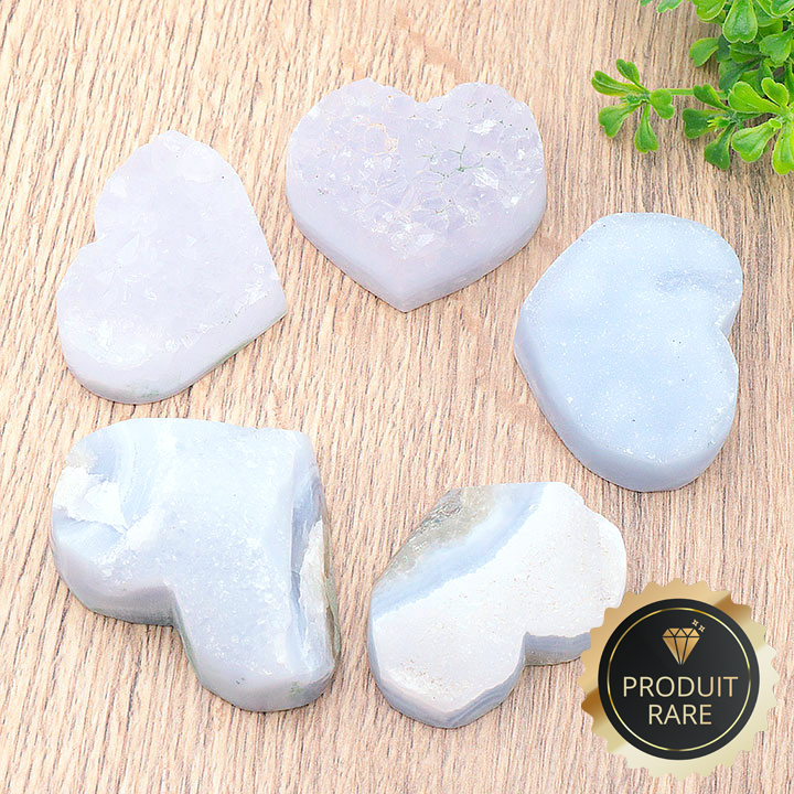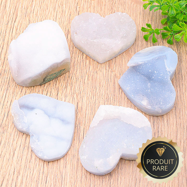 Blue Chalcedony Heart Stone Crystals Namibia AA 60 to 70mm (1 piece)