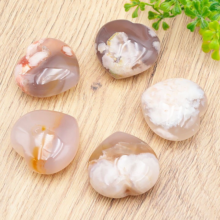 Cherry blossom agate heart stone 30mm A (set of 5 pieces)