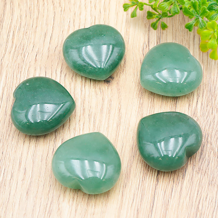 Green aventurine heart pebble 30mm A (set 5 pieces)