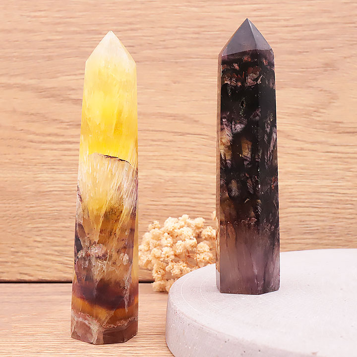Polished fluorine rainbow point AAA 70 to 80mm (set 3 pieces)