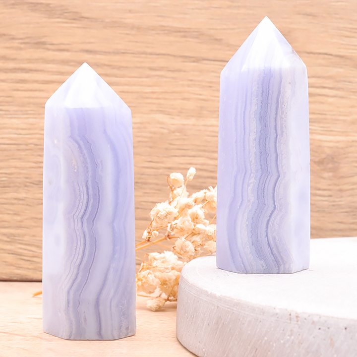 Blue Chalcedony Polished Point Namibia AAA 80 to 90g (1 piece)