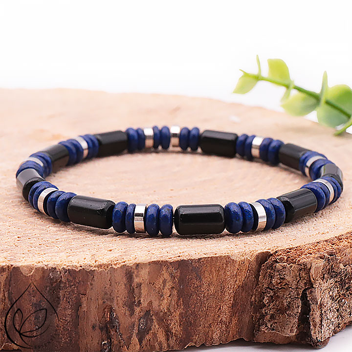 Black obsidian bracelets and pendants. PI Chinese, pebbles, rough stones and stones rolled in obsidian.