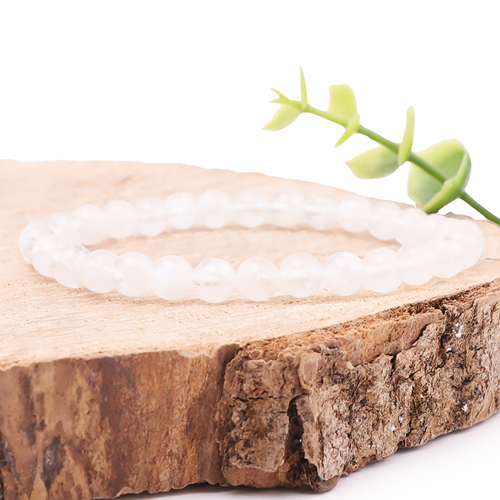 Natural stone bracelets in peristerite. Beads on string and tumbled peristerite stones.