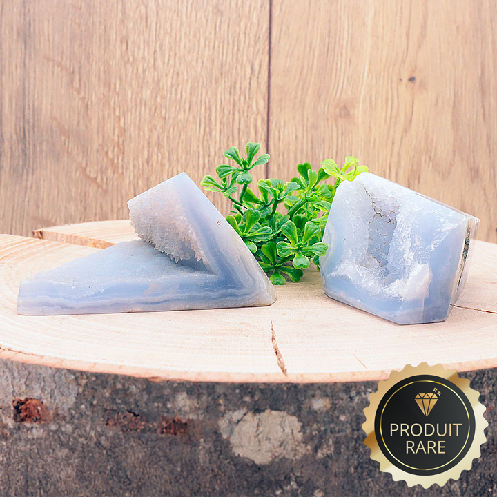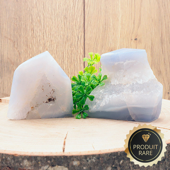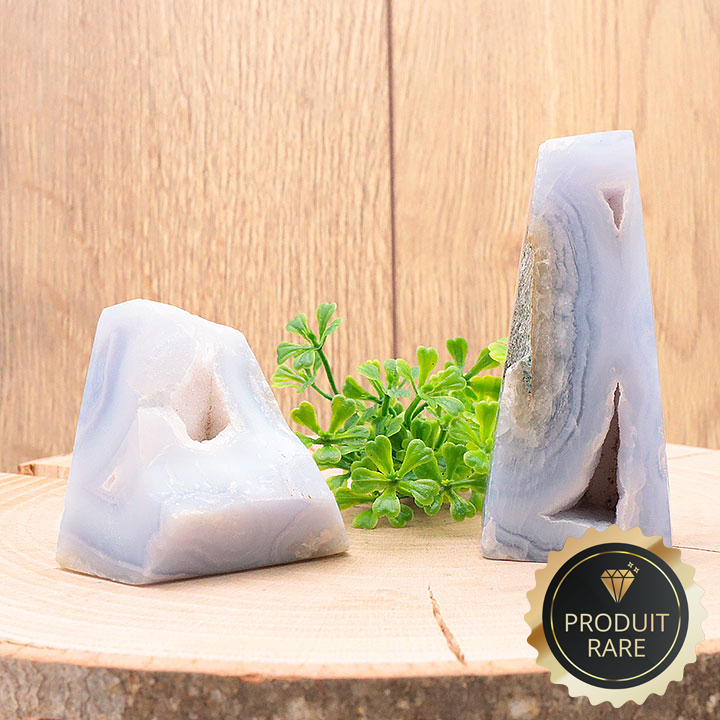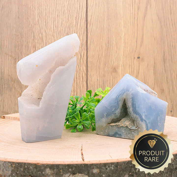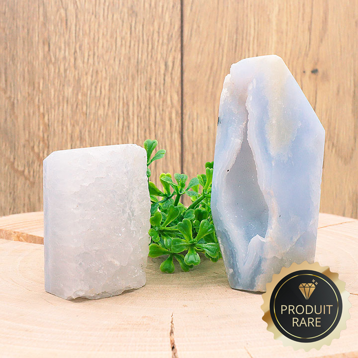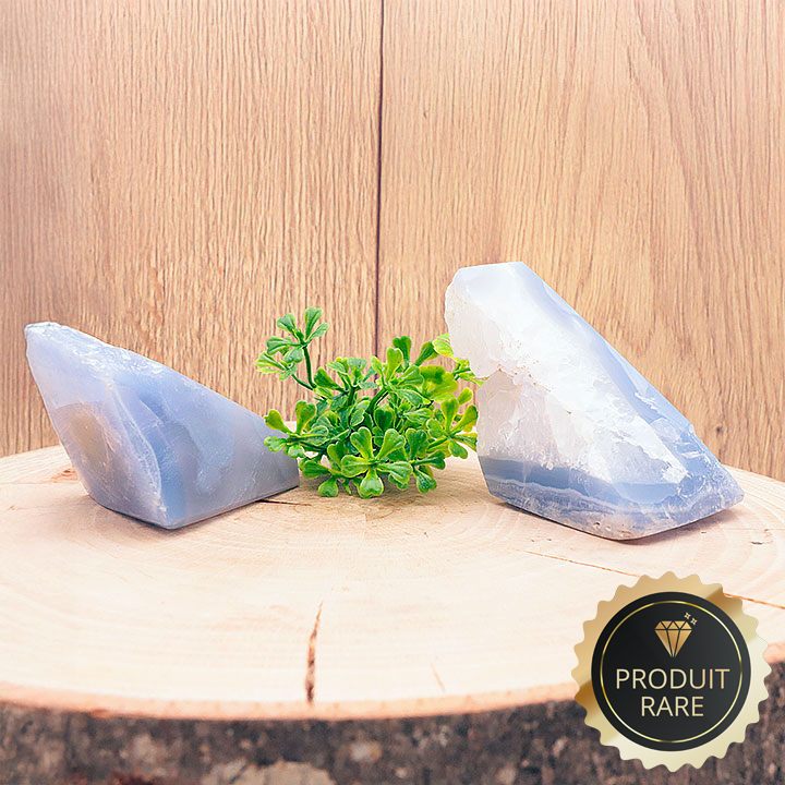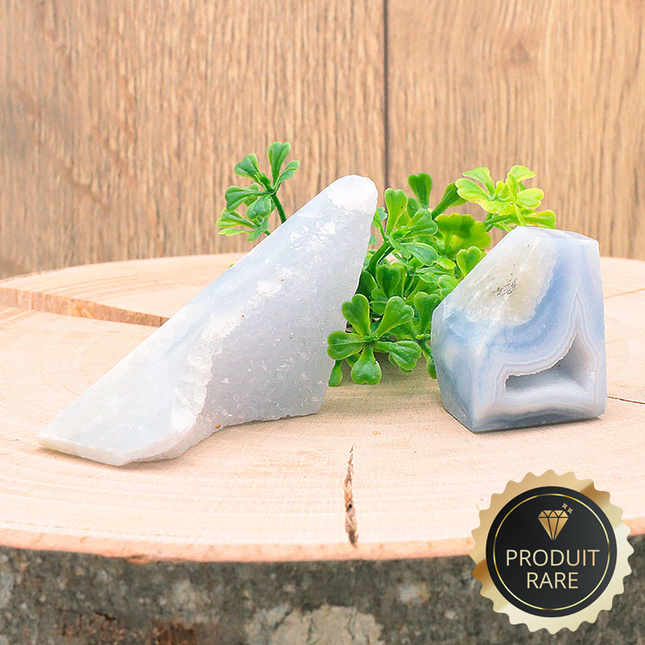 Cut crystals blue chalcedony crystallized Namibia AA 60 to 80g (set of 2 pieces)