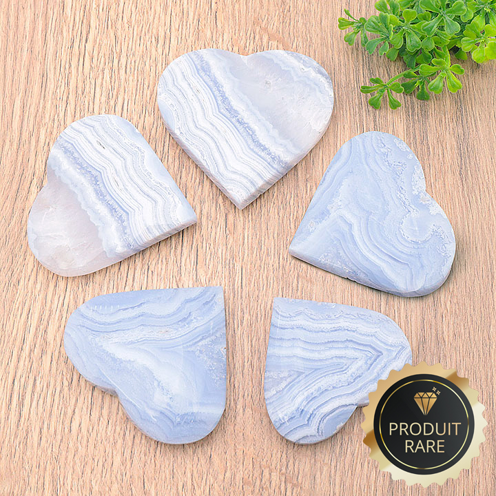 Blue Chalcedony Heart Set Namibia AAA 50 to 60mm (1 piece)