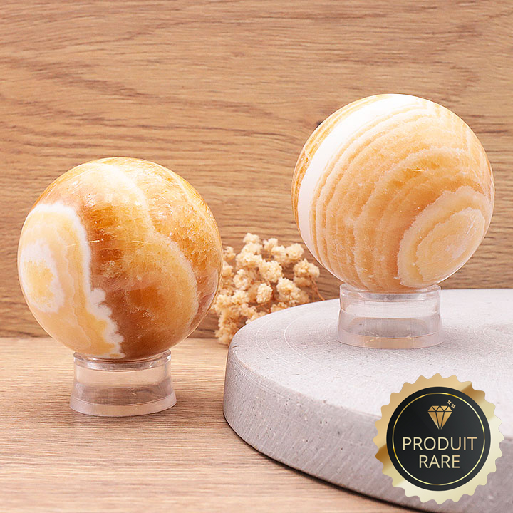 Ribbed orange calcite sphere AAA 60 to 70mm (1 set)