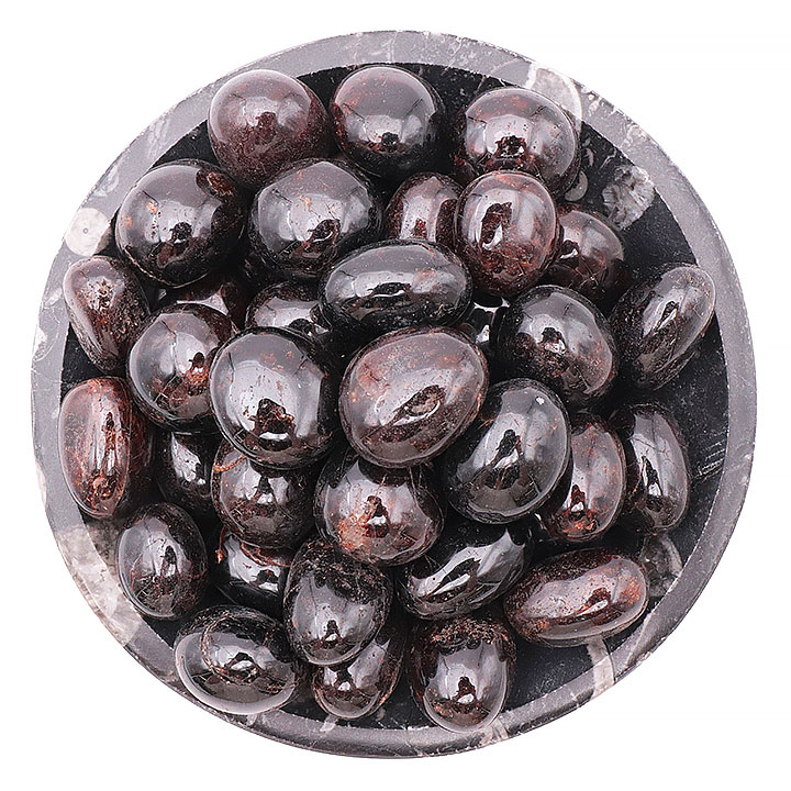 Tumbled red garnet on astrophyllite A 20 to 30mm (set 200g)