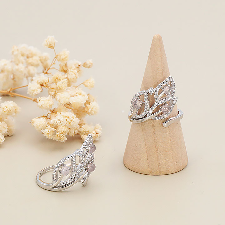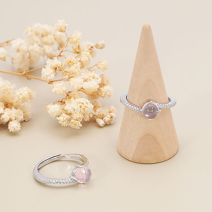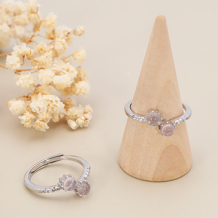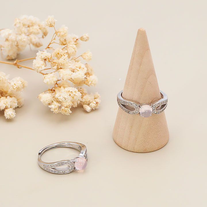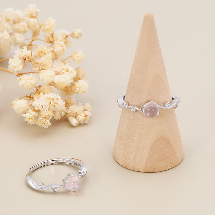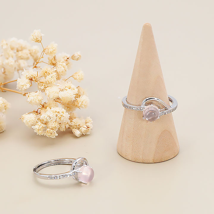 Bracelets and pendants in rose quartz. Pebbles, raw stones, and tumbled stones of rose quartz. Sculpted figurines of rose quartz.